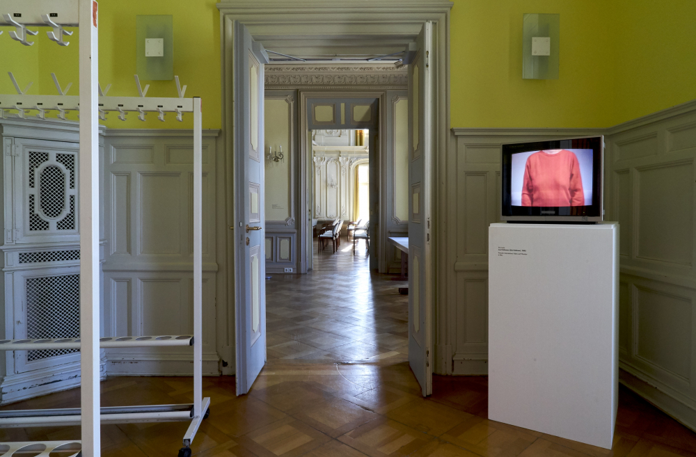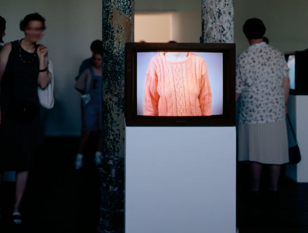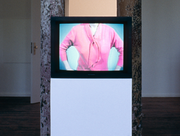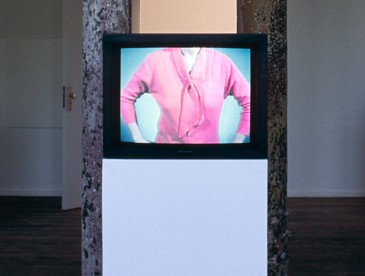 Die Protagonistin nimmt uns die Arbeit ab. Sie steht seit Beginn schon hinter Spiegeln, jenseits des Monitors, in einer doppelten Schicht, halb Raum, halb flächiges Archiv. Das Bild gibt als Reflex unserer selbst ihren Oberkörper frei, auf dem Bild für Bild und in Sprüngen die Kleidung wechselt. Rot, blassrot, lachsrosa, ausgeblichene Farbe, geschmacklose Halbfarbe; anschliessend der Schock eines Musters, der Borten und Zierden. Der Figur fehlen Kopf und Rumpf, sie ist ein reiner Konfektionsoberkörper. Schnitt für Schnitt ein neues Kleidungsstück, und wir wissen in Die Pullover nicht, ob mit jedem Bild noch immer ein Körper existiert, auf den eine neue Hülle gesprungen ist, oder ob eine gesammelte Folge von Kleidern durch beliebige Körper nur angefüllt ist. Ob uns eine Person gegenübersteht, hängt von unserer Phantasie ab. Wir können sie nicht wirklich erkennen. Die Hand greift nach dem Rahmen, der Arm streckt sich zu einem Schalter, einem Punkt auf der Rückseite des Monitorrandes, knapp neben dem Bild. Mit jeder Berührung setzt sich die Reihe fort: ein neuer Pullover, eine neue Farbe, eine andere Dekoration. Der Körper federt um seine Mittelachse zurück, hält ein und steht vor der Apparatur wie vor einem Spiegel, sein Befremden vor der eigenen Erscheinung bleibt aber unsichtbar. Mit jeder neuen Geste wechselt das Bild.
