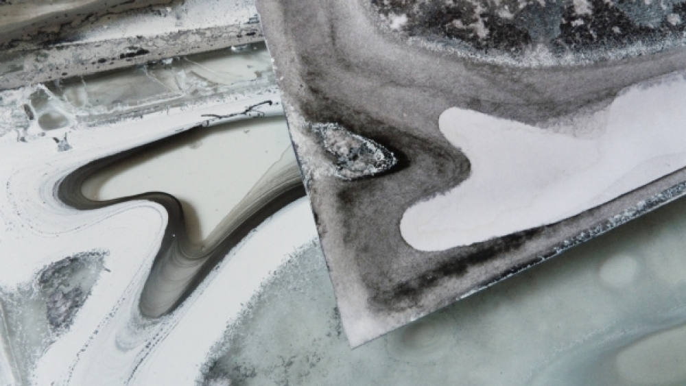 Von den Rändern her fließt Schwarz über eine weiße Fläche, bis die Farbschicht das Bild vollständig bedeckt. Sie beginnt zu trocknen und sich partienweise zusammenzuziehen, bildet Schlieren, Wirbel und Inseln, bevor sie von einer Schicht nun weißer Farbe überdeckt wird, die wiederum zu trocknen beginnt. Rinnsale, Buchten, nebelige Schleier, weiche Strömungsfiguren in vielfachen Mischtönen entstehen, eine fluide Welt, die erneut von einer sich zähflüssig wölbenden schwarzen Farbmasse überflutet wird. Ein Bild in permanenter Transformation: Formentstehung, Auslöschung, Formentstehung. Eric Lanz‘ Video Tonal – in Anspielung auf den Kontrast zwischen den hellen und dunklen Partien eines Bildes – arbeitet mit größtmöglicher Reduktion und den einfachsten künstlerischen Mitteln und öffnet gerade dadurch einen weiten Raum für Assoziationen und mögliche Deutungen. Bilder von Landschaft und Naturprozessen, von Kristallisierung, Wolken, Faltungen, Gletschern oder Flußtälern, drängen sich unmittelbar auf. ...