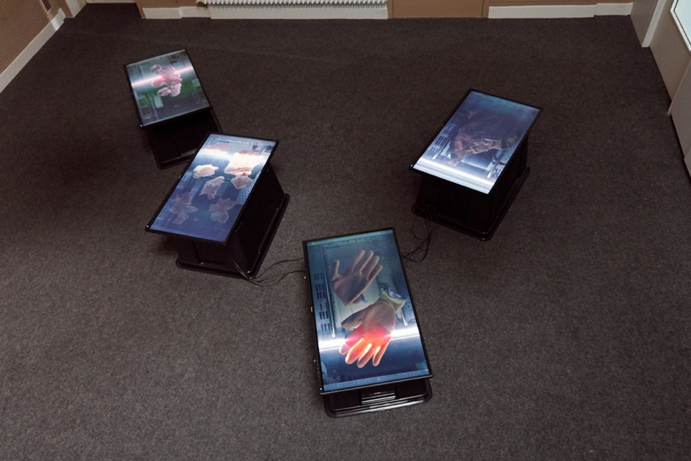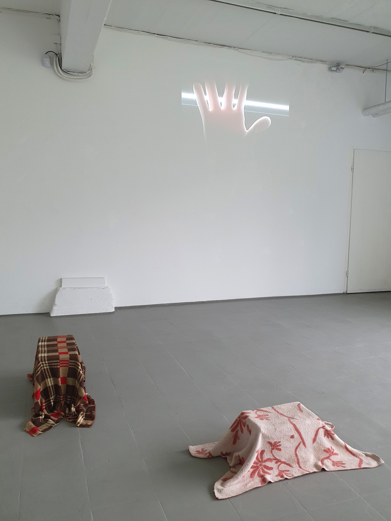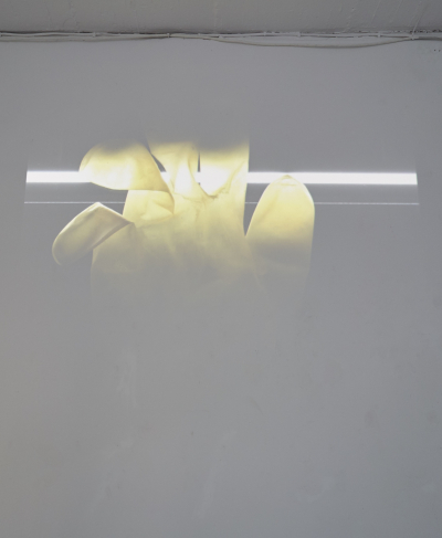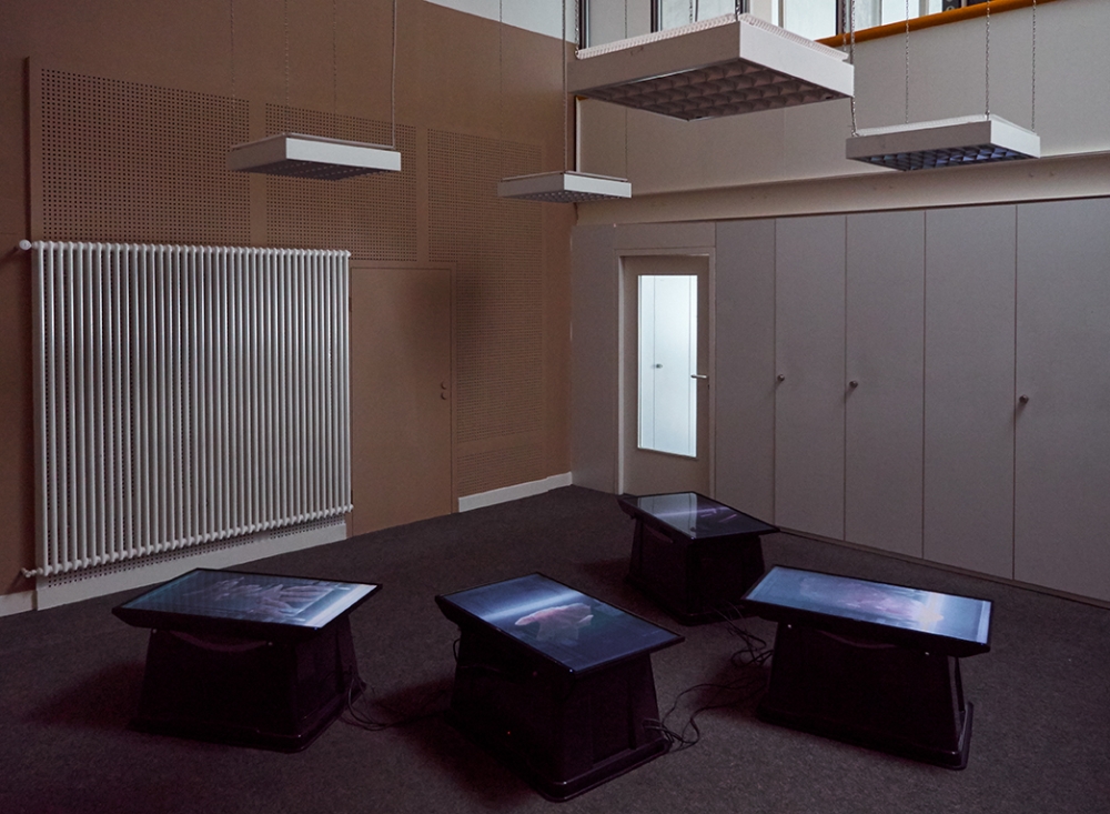 Ein niedriger, schummriger Gang führt von den eleganten Empfangshallen der ehemaligen französischen Botschaft, einem Bau der frühen 50er Jahre von Georges-Henri Pingusson in Saarbrücken, zum früheren Küchenbereich, in welchem die Mahlzeiten für die Gäste zubereitet wurden. Dieser Teil ist später in bizarr proportionierte Büroräume für ein Ministerium umgebaut worden. Sie wirken nun, wo das Gebäude leer steht, wie ein abgenutztes Hinterzimmer. Dort stehen Scannerartige Geräte, unter deren Glasflächen die Lichtbalken rhythmisch und melancholisch klingend vorbeiziehen. Von ihnen ertastet erscheinen nach und nach unterschiedliche Lebensmittel, Handschuhe und Materialien.