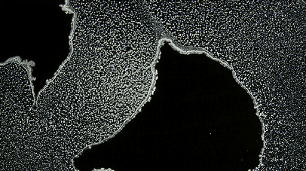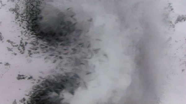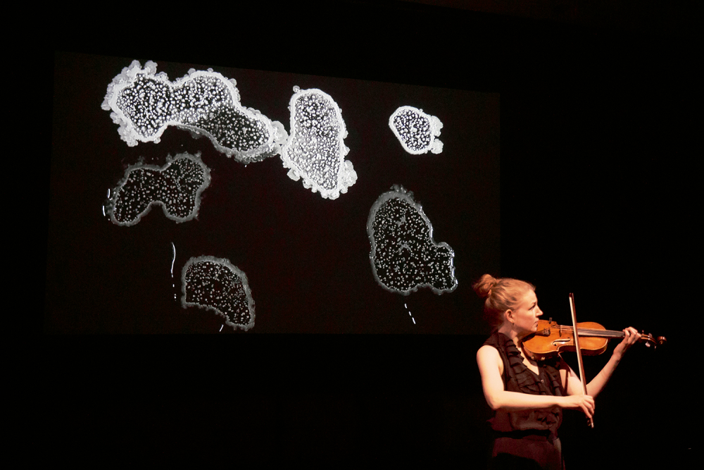 In einem gemeinsamen Schaffensprozess während der Pandemie haben sie versucht, dem kämpfenden arktischen Eis eine Stimme zu verleihen. Ausgehend von Audioaufnahmen in verschiedenen Eisformationen entwickelten die Musikerinnen mit der Geige als einzige Soundquelle eine vielschichtige Klangkartierung der Polarregionen. Gleichzeitig hat der Videokünstler die Bildung von Salzkristallen als Analogie zum schmelzenden Eis untersucht und beobachtet. Das Verlorengehen können wir uns weder gut vorstellen, noch sind unsere Bildmedien dafür geeignet, einen Verlust zu zeigen. Die Umkehr des tatsächlichen Schmelzvorgangs (des Eises) in einen Prozess der Kristallisierung (des Salzes) erlaubt, ein passenderes, weil widersprüchliches Bild zu schaffen. Obwohl sich beide Stoffe auf vergleichbare Weise verhalten können, repräsentieren sie doch gegensätzliche Pole als Beginn und Ende allen Lebens. Das Wachstum des einen spiegelt sich in der Zerstörung des anderen.
