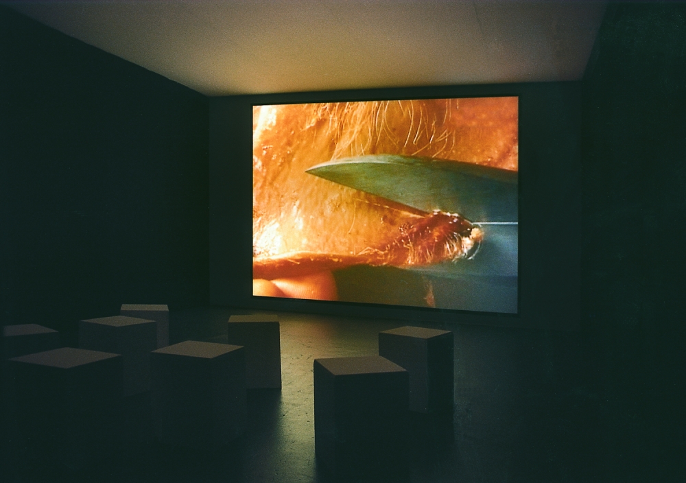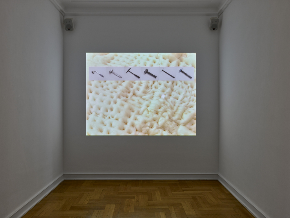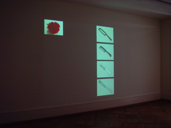 Diese enzyklopädische Installation thematisiert die Entwicklung, die der Mensch in Form von Werkzeugen betrieben hat, um seine Umwelt zu zähmen. Eric Lanz gibt der Überlegung einen zusätzlichen Dreh, indem er seine Installation auf die Art und Weise einer interaktiven Software anlegt... Auf der Projektionswand erscheinen verschiedene Gegenstände, Substanzen und Stoffe, die ein unsichtbarer Nutzer virtuell bearbeitet, indem er sich in einer Werkzeugpalette bedient. Der Cursor rollt Menüs auf, klickt in ausgesuchte Kästchen, und löst damit die Handlungen aus. Die Interaktivität ist jedoch bloß vorgespielt: der Betrachter kann nur zuschauen. Zusätzlich wird seine ganze gebräuchliche "Interfacekultur" durch eine fast durchgängige Verdrehung der Gewohnheiten gebeutelt: die Anwendung der Werkzeuge ist ungeachtet ihrer ursprünglichen Bestimmung völlig frei. Der Zuschauer bleibt seinerseits passiv und fasziniert. Letzten Endes verweisen die Vielfalt und die Fülle des Gegebenen mit ihrem Taumel an willkürlichen und unendlichen Handlungen die Versprechen der virtuellen Technologie auf ihre dürftigen generischen Illusionen.